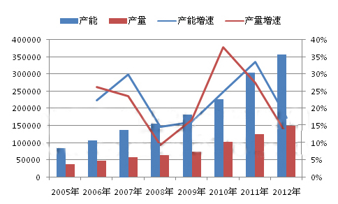 圖2:2005-2012年我國預(yù)拌混凝土產(chǎn)能、產(chǎn)量及增速情況