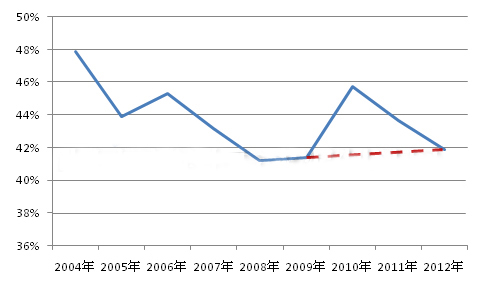 圖1:2004-2012年我國預(yù)拌混凝土產(chǎn)能利用率走勢