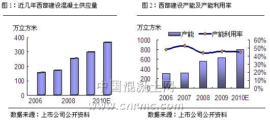 深耕于華南市場的水泥企業龍頭華潤水泥,近年來混凝土業務增長連年攀升,這家起步于香港的行業領軍企業通過收購、新建等方式進入內地混凝土產業,連續多年成為華南地區最大混凝土生產商。根據公司提供的09年年報披露,截止09年底,公司運營中的混凝土攪拌站有25座,年產能為1530萬立方米;09年底,已批準并開始在華南地區興建的混凝土攪拌站有13座,該等混凝土攪拌站的年產能合計共達780萬立方米,由此預計2010年該公司產能達到2310萬立方米。