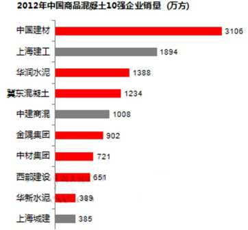 與2011年相比,中國(guó)混凝土行業(yè)在2012年有了翻天覆地的變化。2012年世界混凝土10強(qiáng)中只有一家不是水泥企業(yè),中國(guó)混凝土10強(qiáng)中有三家不是水泥企業(yè),這個(gè)過(guò)程中特別是央企中國(guó)建材為主導(dǎo)的大規(guī)模并購(gòu),高速的發(fā)展,快速的擴(kuò)張,加速了國(guó)內(nèi)混凝土行業(yè)放生了較大的變化。