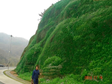 目前,在發達國家和地區,已普遍采用生物防護及生物與工程措施相結合的生態防護技術。在我國最近幾年的鐵路、高速公路建設和采石場的生態修復成績斐然。在處理石質邊坡的各生物防護技術中,植被恢復效果最為明顯,并且發展最快的是植被混凝土生態護坡技術,實現了高陡巖石邊坡復綠技術的革命性突破!使巖石坡面形成一層致密的護坡灌草植被,比工程防護更具有美化生態環境的意義,最終形成自然生態群落,達到生態防護的中長期效果。
