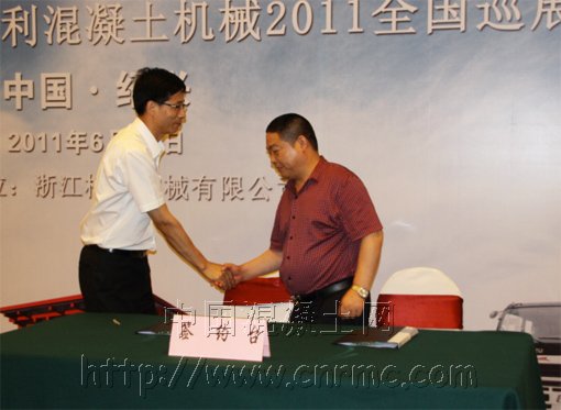 緊接著,紹興寶業(yè)住宅產(chǎn)業(yè)化有限公司總經(jīng)理謝寶金與上海鴻得利重工營銷中心總經(jīng)理、常務(wù)副總經(jīng)理徐建華簽訂框架協(xié)議;浙江柳鴻機(jī)械總經(jīng)理謝軻與浙江寶業(yè)住宅產(chǎn)業(yè)化有限公司總經(jīng)理謝寶金簽署了48M泵車購置合同,至此巡展會議到此結(jié)束。