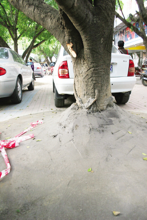 記者電話聯系南寧市綠化工程管理處,綠化管理科工作人員稱,城市中的樹都要留下一個露出泥土的孔,不能用混凝土封死,這樣會影響樹木的“呼吸”,影響樹木生長。