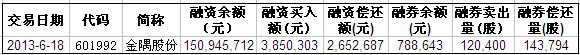 金隅股份6月18日融資融券信息顯示,金隅股份融資余額150,945,712元,融資買(mǎi)入額3,850,303元,融資償還額2,652,687元,融券余額788,643元,融券賣(mài)出量120,400股,融券償還量143,794股。金隅股份融資融券詳細(xì)信息如下表: