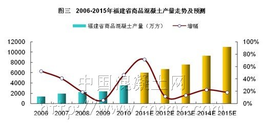 “十二五”時期是我國經濟社會發展的重要戰略機遇期,也是我國經濟發展階段從工業化中期向后期過渡的關鍵時期,《福建省“十二五”規劃綱要》中提出依托、大中小城市和小城鎮協調發展的格局,力爭城鎮化率每年提高1.5個百分點,到2015年城鎮化率達到60.1%。根據這個《綱要》預計在下一個五年中,福建省混凝土行業生產總量將達到2015年的8000萬方。