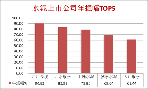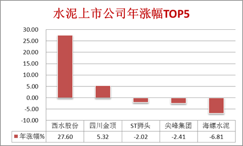 從滬深兩市的水泥上市公司年漲幅數據同樣印證了2013年股市的頹勢。22家水泥上市公司的年漲幅僅西水股份、四川金頂兩家為正值,這與2012年呈現了鮮明的對比。一方面,固然有股市整體走勢下滑的影響,而另一方面,也反映了產能過剩、環保等問題給水泥行業帶來了不小的壓力??v觀股市榜單,金隅股份在六宗“最“中,占據兩席,成為最大贏家。