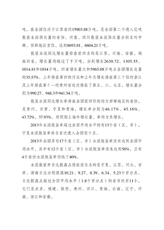 2013年全國散裝水泥發(fā)展主要統(tǒng)計指標(biāo)快報簡析