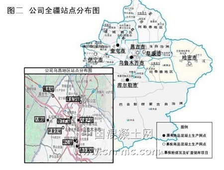 看到公司從2006年至2010年混凝土產量每年處于上漲態勢。特別是2009年公司募集資金5.25億元,公司新增預拌混凝土生產網點5處,同年公司混凝土產量達到294萬立方米,實現凈利潤7929萬元,同比增長22%。2010年新疆地區預拌混凝土企業得到了快速發展。據統計,截至2010年底,全區共有混凝土生產企業85家,同比去年增加了25家;現有設計生產能力達7000萬立方米,同比去年增長了2870萬立方米;2010年全年預拌混凝土產量達1596萬立方米,同比去年增長了564萬立方米,增幅達54.7%。西部建設也再接再厲,依托募集到資金近1.36億元,使用超募資金2800.00萬元對阜康市西部建設有限責任公司追加投資。同時公司伊寧攪拌站和米東區攪拌站的建設項目也建成投產。同年公司混凝土產量已超越400萬方,利潤總額1.32億元,較上年同期增長25.85%。公司還找準時機,就針對南北疆的商品混凝土市場需求的快速增長,在喀什、和靜、焉耆、博湖等地進行了生產網點的布局,并在跟蹤大型工程項目方面,機動靈活地采取“以固定站點為依托,以移動站點為重要補充”的經營策略,擴大疆內市場。