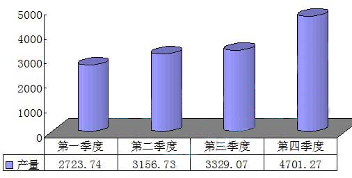 2013年廣東省預拌混凝土產量呈季度遞增的趨勢,第四季度的產量較前三個季度有顯著的增長,達4701萬噸,各季度混凝土產量情況見圖6: