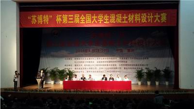 4月19日 ,由教育部無機非金屬材料工程專業教學指導委員會、中國混凝土與水泥制品協會教育與人力資源工作委員會、全國高等學校建筑材料學科研究會聯合主辦,重慶大學、高性能土木工程材料國家重點實驗室和我公司聯合承辦的“蘇博特”杯第三屆全國大學生混凝土材料設計大賽在重慶大學隆重拉開帷幕。大賽吸引了來自國內61所無機非金屬材料與土木工程等相關專業的109支隊伍的327名學生參賽,陣容強大,盛況空前。
