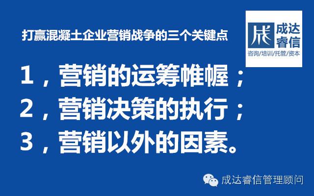 【1,營銷的運(yùn)籌帷幄】對于混凝土企業(yè)而言,營銷戰(zhàn)爭的統(tǒng)籌帷幄到底都包含哪些內(nèi)容?營銷決策團(tuán)隊(duì)到底應(yīng)該怎么做,才不至于因?yàn)闋I銷決策的失敗導(dǎo)致整個營銷戰(zhàn)爭的失敗?