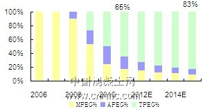圖表6 2011年EO與MPEG\APEG\TPEG價格走勢(元/噸)