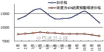 圖表7 2011年環氧乙烷與聚羧酸減水劑價格走勢