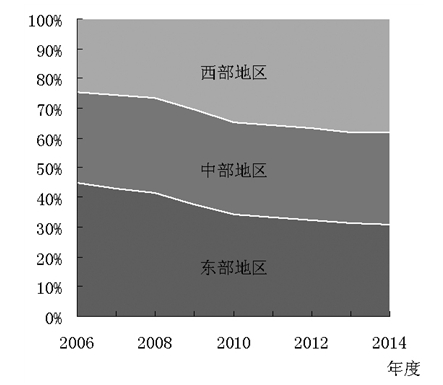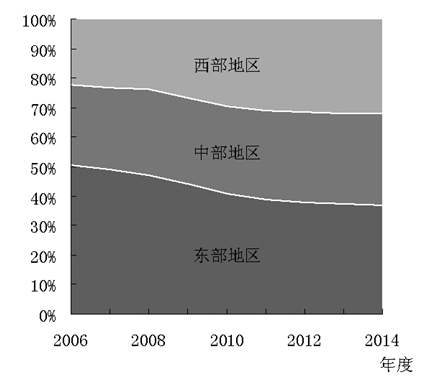 圖4 歷年水泥熟料產能分地區比重變化情況