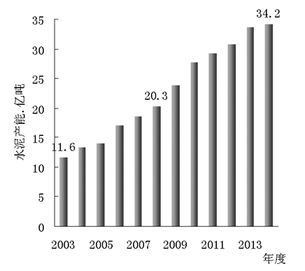 據跟蹤統計,截止到2014年上半年,實際運營水泥熟料生產線1600余條,熟料生產能力18.9億噸,水泥生產能力突破34億噸,達到新的高峰。近十年來,水泥行業取得長足發展,2013年水泥產量是2003年的2.8倍,主營業務收入是2003年的5.3倍,但水泥產能也在不斷擴大,產能過剩問題逐漸凸顯。雖然近幾年在政府相關部門、行業協會及水泥企業的共同努力下,遏制水泥行業產能過剩工作初顯成效,但全行業化解產能工作仍面臨較大壓力。