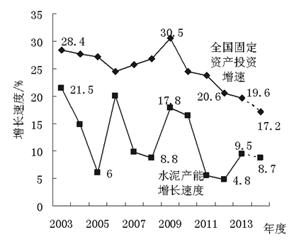 圖1 全國固定資產投資及水泥產能增速變化情況