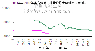 進入6月以來,工業萘市場依舊延續著低迷態勢,根據中國混凝土網統計的數據顯示,截至本周,華東地區工業萘市場均價已跌破5000元(噸價,下同),各地市場也都以弱勢運行,華北地區商談價4700-4800元,低位4600元,生產企業有提價意向,但并未實施;華中地區報價4800元;東北地區報價5000-5100元;西南地區對外報價5000-5100元;西北地區對外報價4700-5000元。各地工業萘市場價格一再下調,但成交量卻遲遲未有回升的跡象。