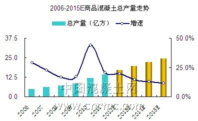 根據(jù)砼網統(tǒng)計,從2006年開始,我國商品混凝土總產量呈上升趨勢,“十二五”期間總量達到97.2億方,因大部分地區(qū)建設呈飽和狀態(tài),增速逐漸有所放緩。