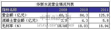 截止2011 年年底,華新水泥各省份混凝土攪拌站為31個。湖北省內拌站數(shù)量達到22個,其他拌站分別分布在湖南、河南、四川等地。目前,還有個別攪拌站項目正在籌劃中,預計“十二五”期間將陸續(xù)建成。2011年,公司混凝土實現(xiàn)新增產能420萬方,混凝土總產能超過1000 萬方。營業(yè)收入5.84億元,營業(yè)成本4.73億元,毛利率為19%。公司實施“水泥-混凝土協(xié)同”戰(zhàn)略,加大混凝土業(yè)務的發(fā)展力度,實現(xiàn)對水泥渠道的有效拓展,以應對淘汰水泥產能的相關規(guī)定。2012 年,公司定增17.43億發(fā)展預拌混凝土,計劃銷售混凝土510 萬方,增長約152%;預計實現(xiàn)營業(yè)收入較2011 年增長17%左右。
