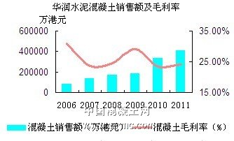以華潤水泥為例,華潤水泥在水泥行業中屬于較早就進入混凝土行業的企業之一。從混凝土產量及毛利率來看,華潤混凝土正處于一個穩步增長的階段。同時在由砼網評選的2011年混凝土企業十強中,超越了上海建工材料公司,一舉成為了混凝土行業產量最大的企業。由此可見,華潤水泥的混凝土業務一直處于穩步增長的狀態,因此,實現水泥混凝土一體化才是水泥企業應該完成的發展目標。