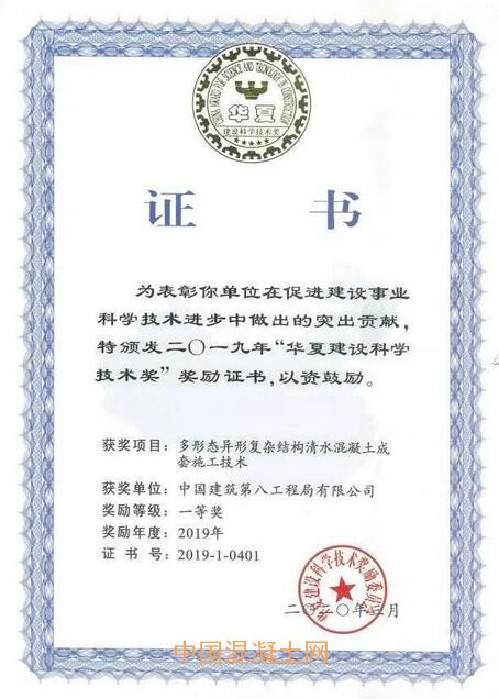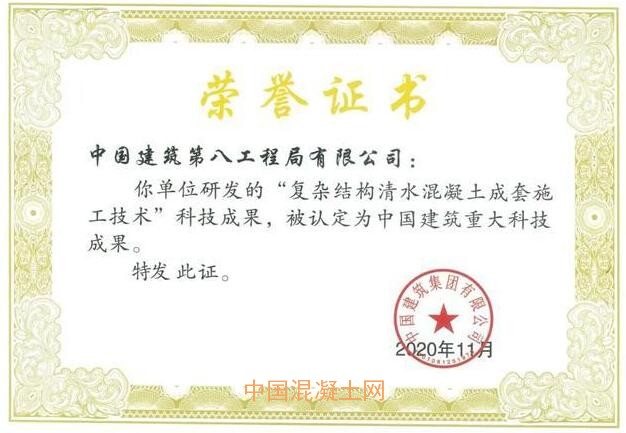 在工程一線緊張施工的同時,馮長征仍不忘積極總結研究成果,沉淀施工技術,助推企業發展,他牽頭的課題成果《高品質清水混凝土曲面復雜結構成套施工技術研究與應用》經中建集團科技成果評價,整體達到國際先進水平,部分達到國際領先水平;牽頭完成《復雜結構清水混凝土成套施工技術》獲得2019年華夏建設科學技術獎一等獎、并入選2020年第二批中國建筑重大科技成果;《清水混凝土曲面復雜結構成套施工技術研究與應用》獲得中建集團科學技術獎二等獎、中建八局科技進步成果獎一等獎。