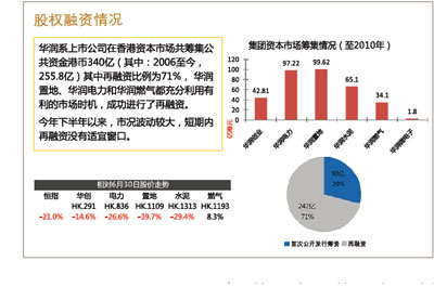 記者:資金籌集是價值管理的第四個模塊。如何找錢,華潤過去的優勢是很明顯的。