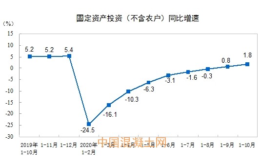 隨著疫情防控取得重大成果以及穩(wěn)投資政策不斷落地見效,繼前三季度固定資產(chǎn)投資(不含農(nóng)戶)增速由負(fù)轉(zhuǎn)正后,1—10月份投資同比增長1.8%,增速比前三季度加快1.0個百分點,進(jìn)一步呈現(xiàn)出穩(wěn)步回升的勢頭。1—10月份固定資產(chǎn)投資呈現(xiàn)以下特點: