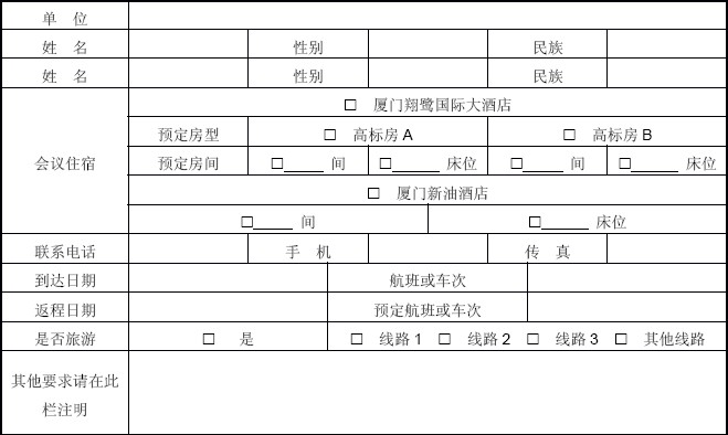 請參加會議的代表務必認真填寫參會人員回執(可復印)。無回執的代表,一般不予安排。