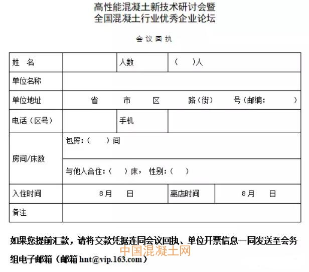 論文請通過E-mail以附件形式發送至:hnt@vip.163.com,郵件主題注明“綠色高性能混凝土優秀論文評選”,論文經評審合格后將收錄在會議論文集中,優秀論文將推薦至全國中文核心期刊《混凝土》雜志發表。