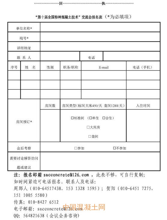 請將以下信息通過E-mail發送到會議秘書處:sacconcrete@126.com